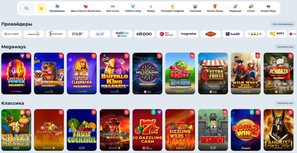 Игры в Champion Casino
